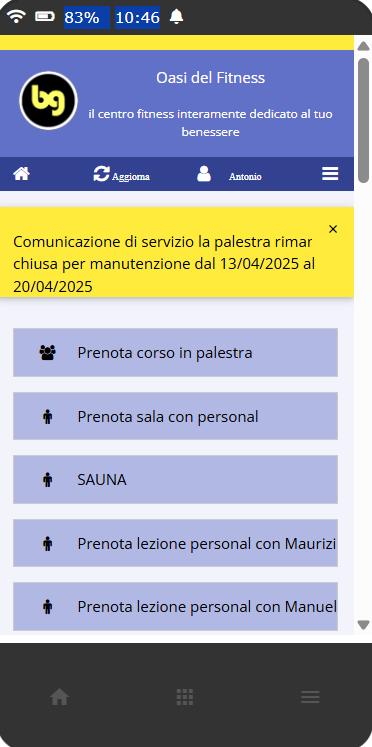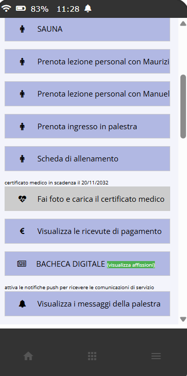 - 📥 Leggere i messaggi della palestra nella sezione dedicata